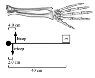 When a person holds a mass steady with a bent elbow, the forearm is PREVENTED from moving either up or down