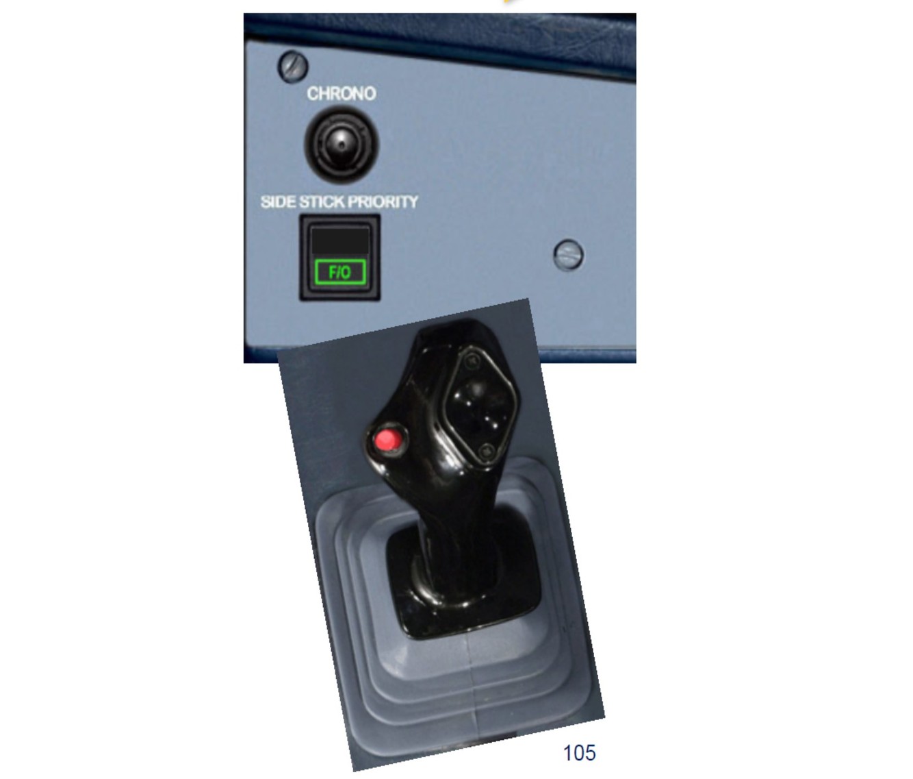 The FO is holding the takeover pushbutton and inputs are being commanded on the CA’s side stick – would be accompanied by the aural “PRIORITY RIGHT”
