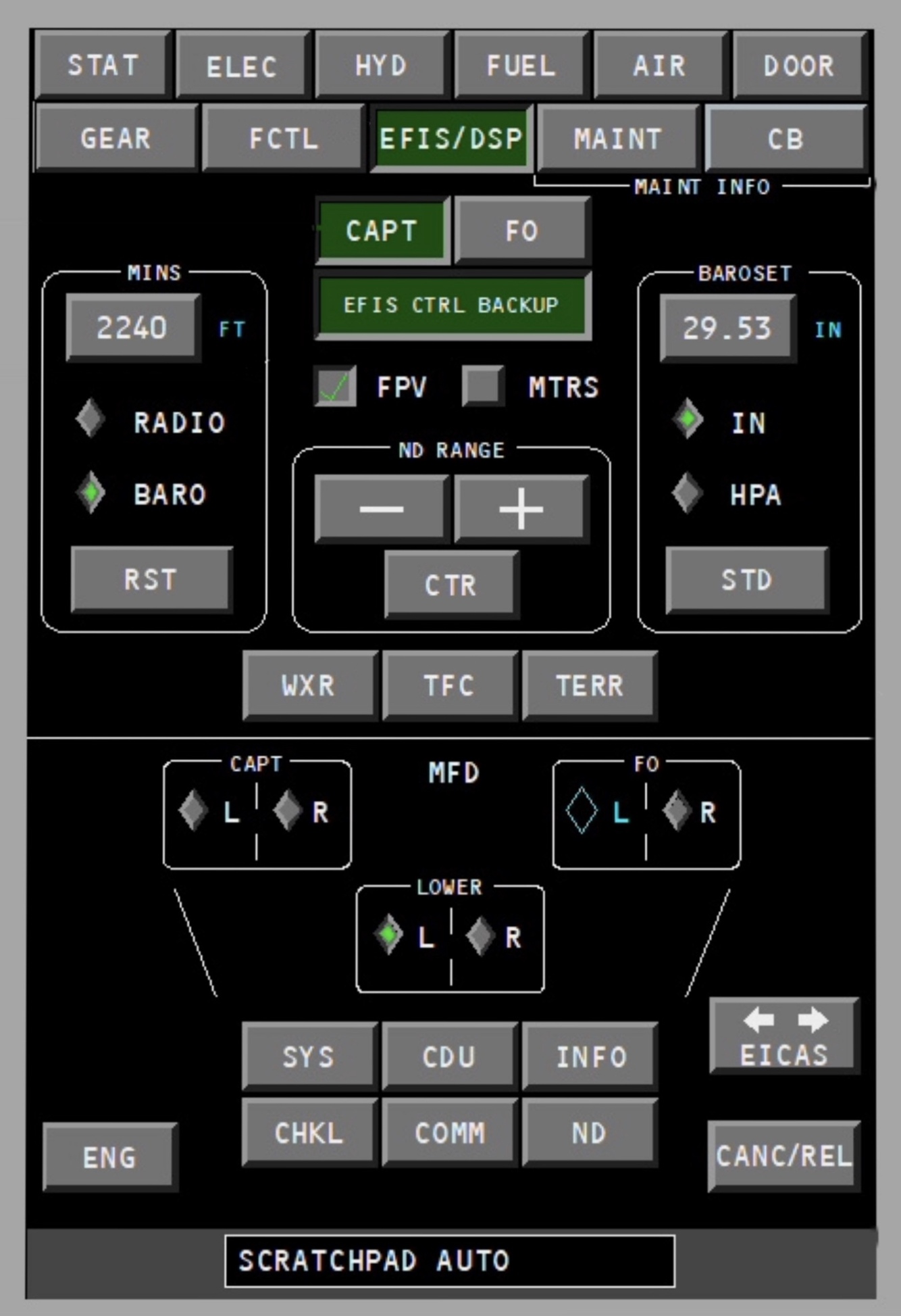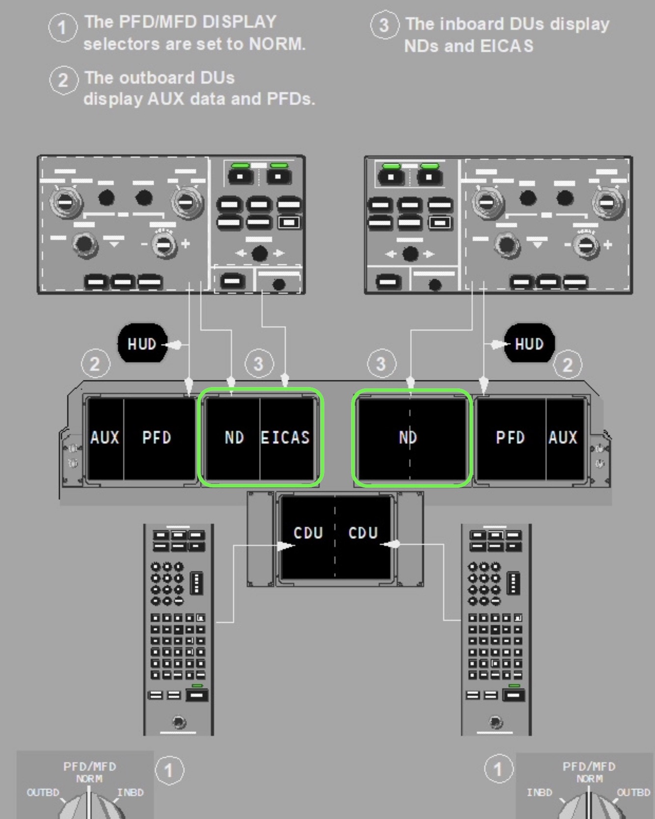 FCOM > 10-20 > Display Selection and Control > Display Selection and Control Examples > Default Display Configuration