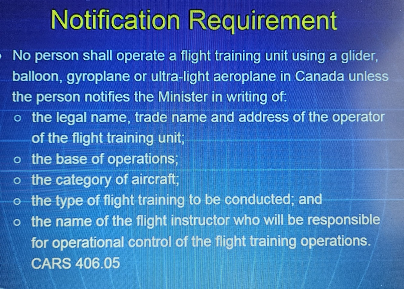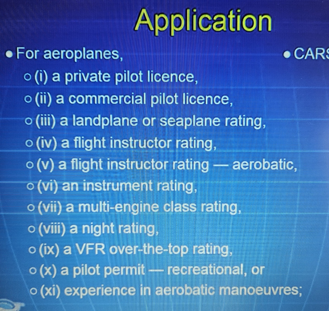 It applies to the operation of aeroplane, helicopter, glider, balloon, gyro, and ultra-lights in a flight training service toward obtaining any of the following:
