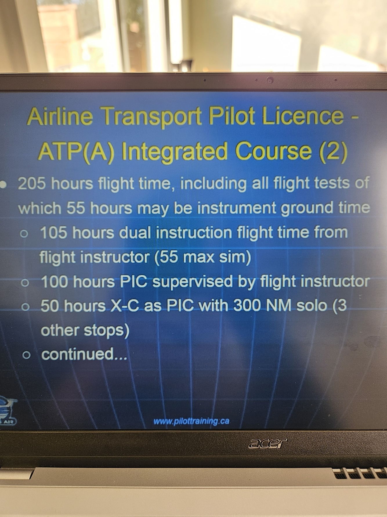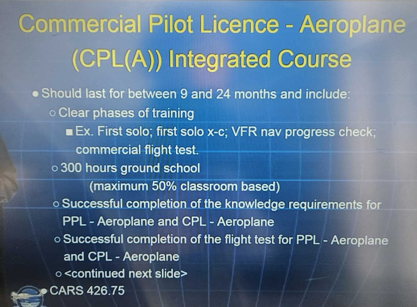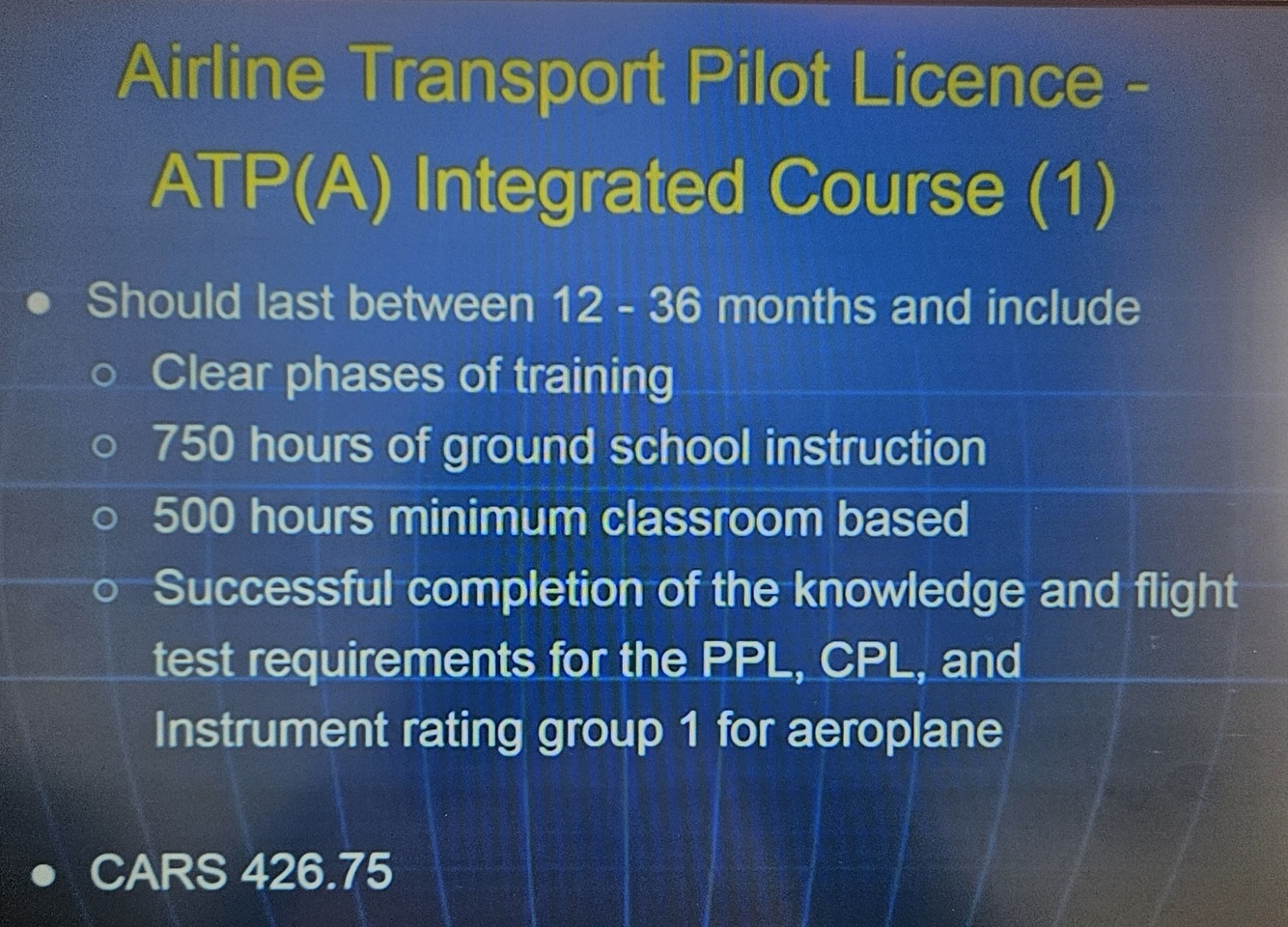Requirements for integrated ATPL course: