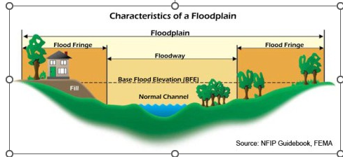 The stream channel and that portion of the adjacent floodplain that must remain open to permit passage of the 100-year flood without exceeding the Base Flood Elevation.