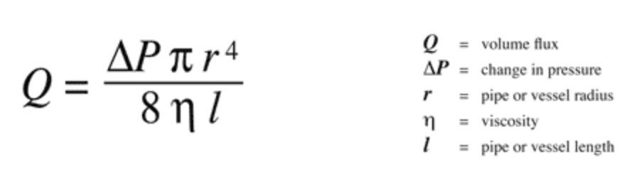 In laminar flow, pressure gradient is proportional to flow by the relationship: