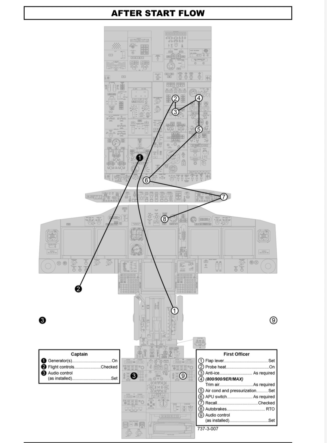 (FAT…flap, anti-ice, Trim air, ) / FlowAfterStart