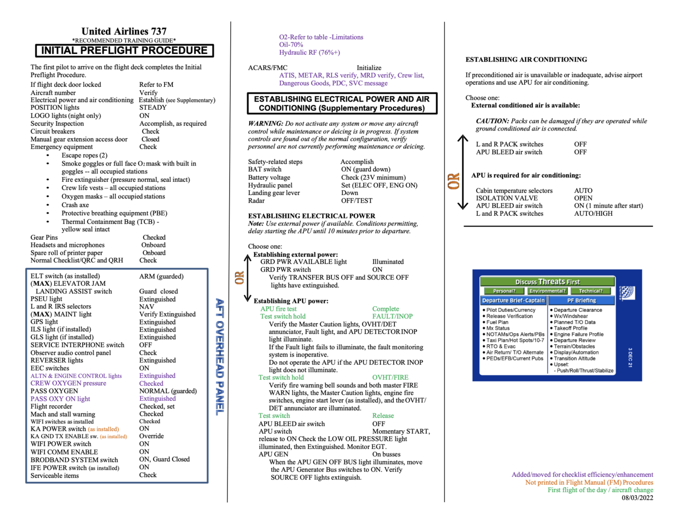 Preflight Sequence CHEAT SHEET