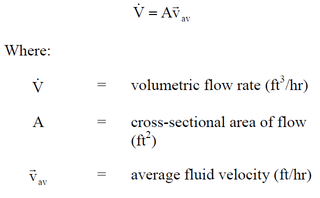 reference point per unit time. The volumetric flow rate equals the product of the average velocity of the fluid and the cross-sectional area of flow.