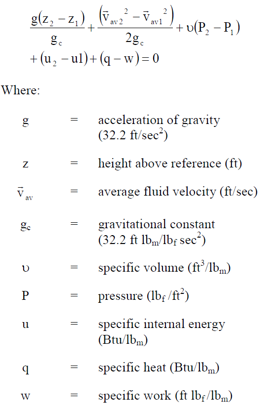 H<sub>p</sub> = head added by the pump (ft) W<sub>p</sub> = work done on the fluid by the pump (ft lbf) h<sub>2</sub> = specific enthalpy exiting the pump (Btu/lbm) h<sub>1</sub> = specific enthalpy entering the pump (Btu/lbm)