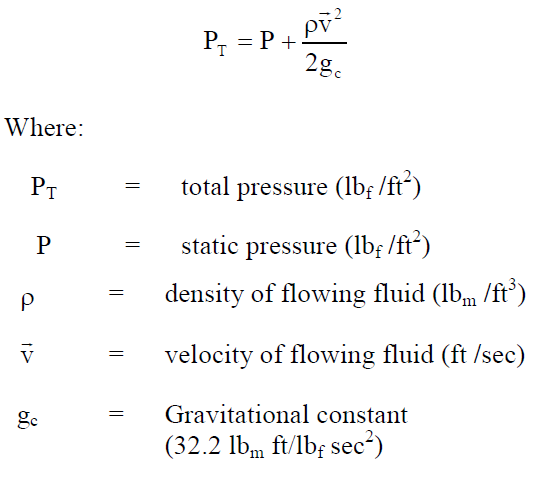Velocity head - (Vav)2/ 2g - represents the kinetic energy the fluid possesses due to its velocity. It is the height, in feet, to which the flowing fluid would rise in a column if all of its kinetic energy were converted to potential energy.