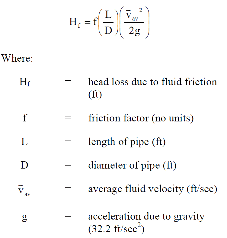 What is the formula for head loss (Hf) due to friction?