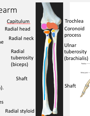Radius is thumb side Ulna sits medial side (closest to body)