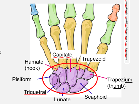 What are the names of the 8 bones of the carpus?