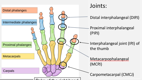 Proximal interphalangeal joint (PIPJ) –> only found in the 4 fingers