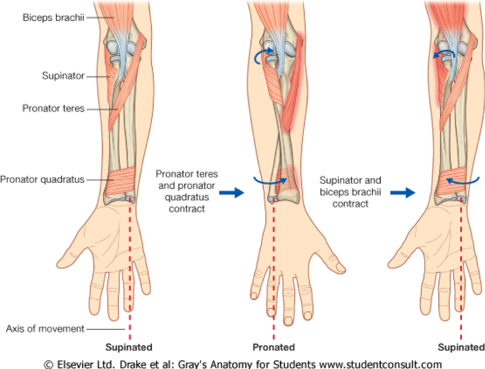 What muscle is pronation of the forearm achieved by?