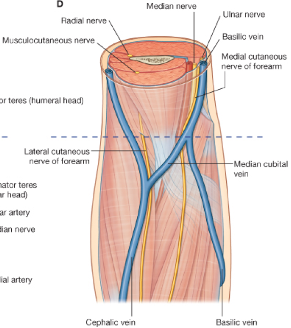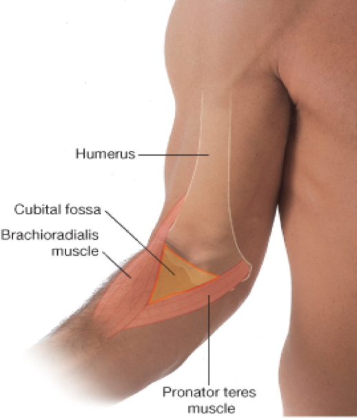 Fascia and superficial veins overlying the cubital fossa