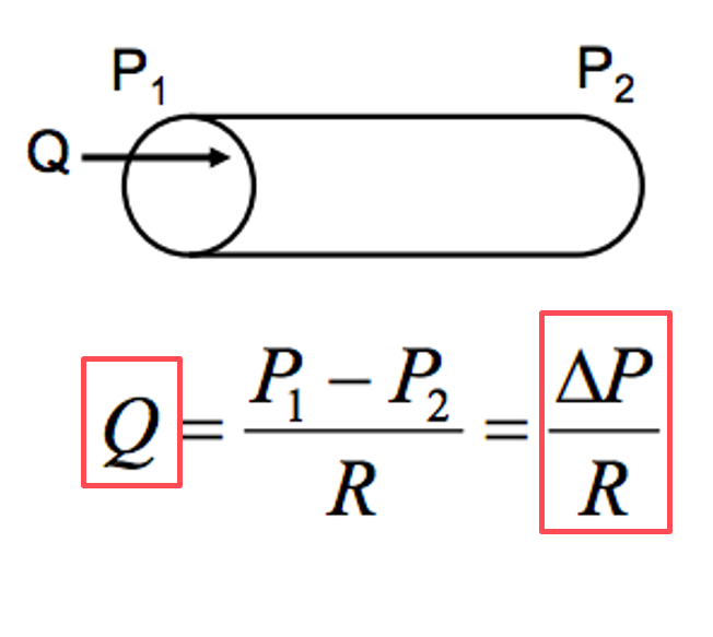 Q = P1-P2 / R