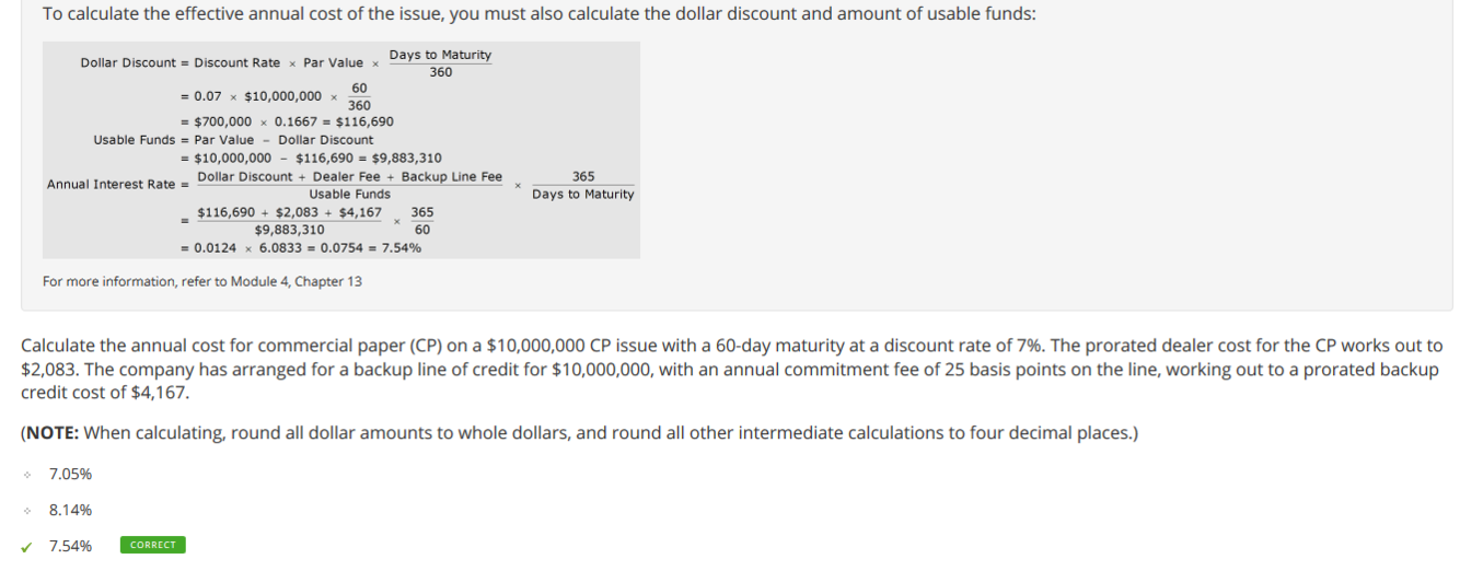 calculate effective annual cost of a CP issuance (ch 13)