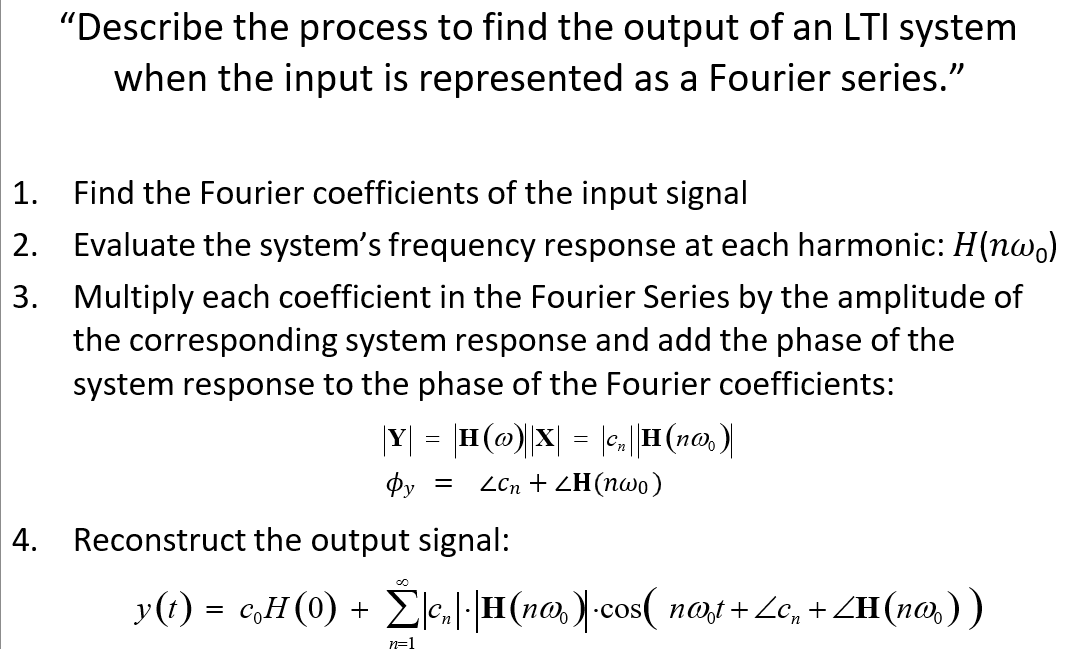 This formula combines the input coefficients with the system’s response.