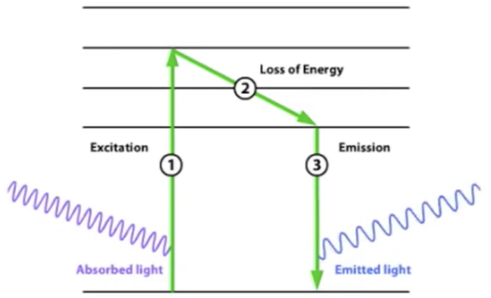 A molecule that emits light of a certain wavelength after having absorbed light of a different wavelength
