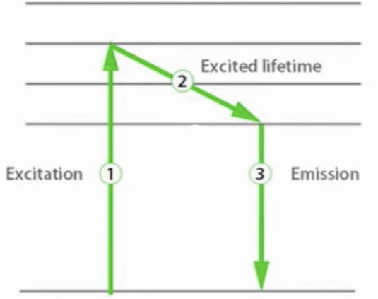 Explain the excited lifetime of a fluorophore - about how many seconds does it last?