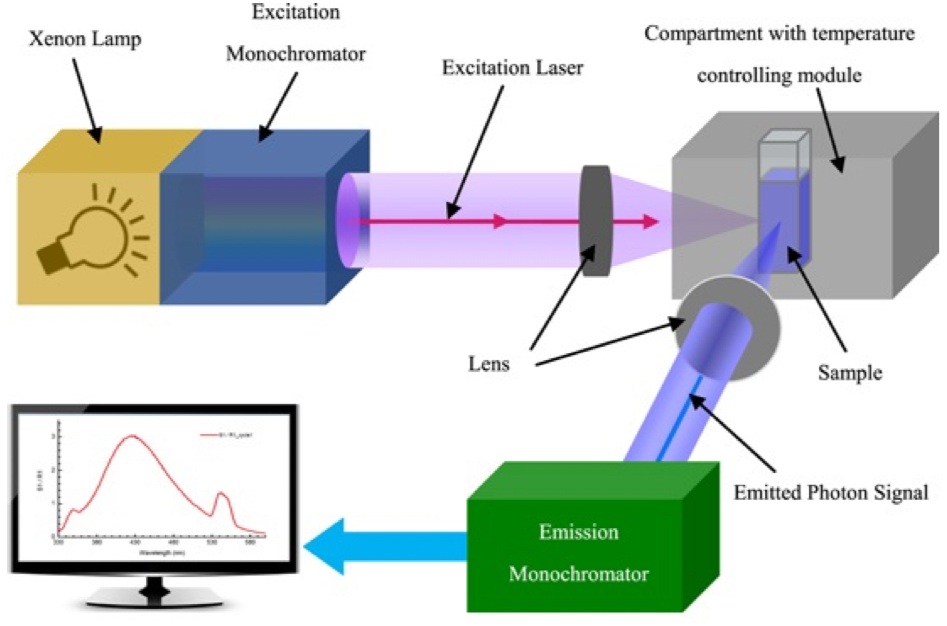 Explain the relationship between the excitation wavelength and the emission intensity in a fluorophore