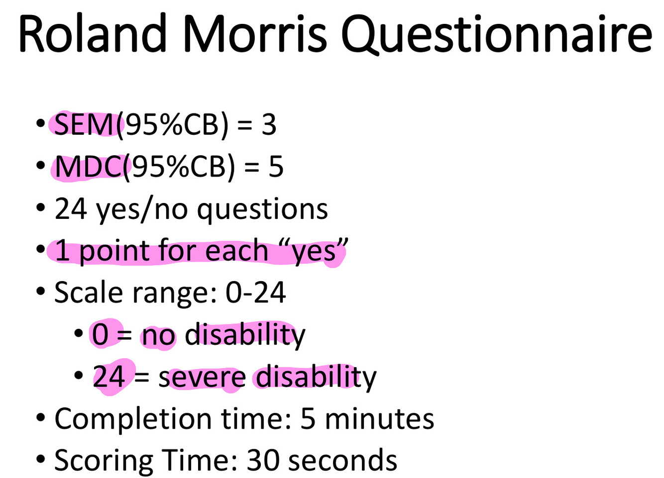 Roland-Morris MDC (95% CB)= 5pts