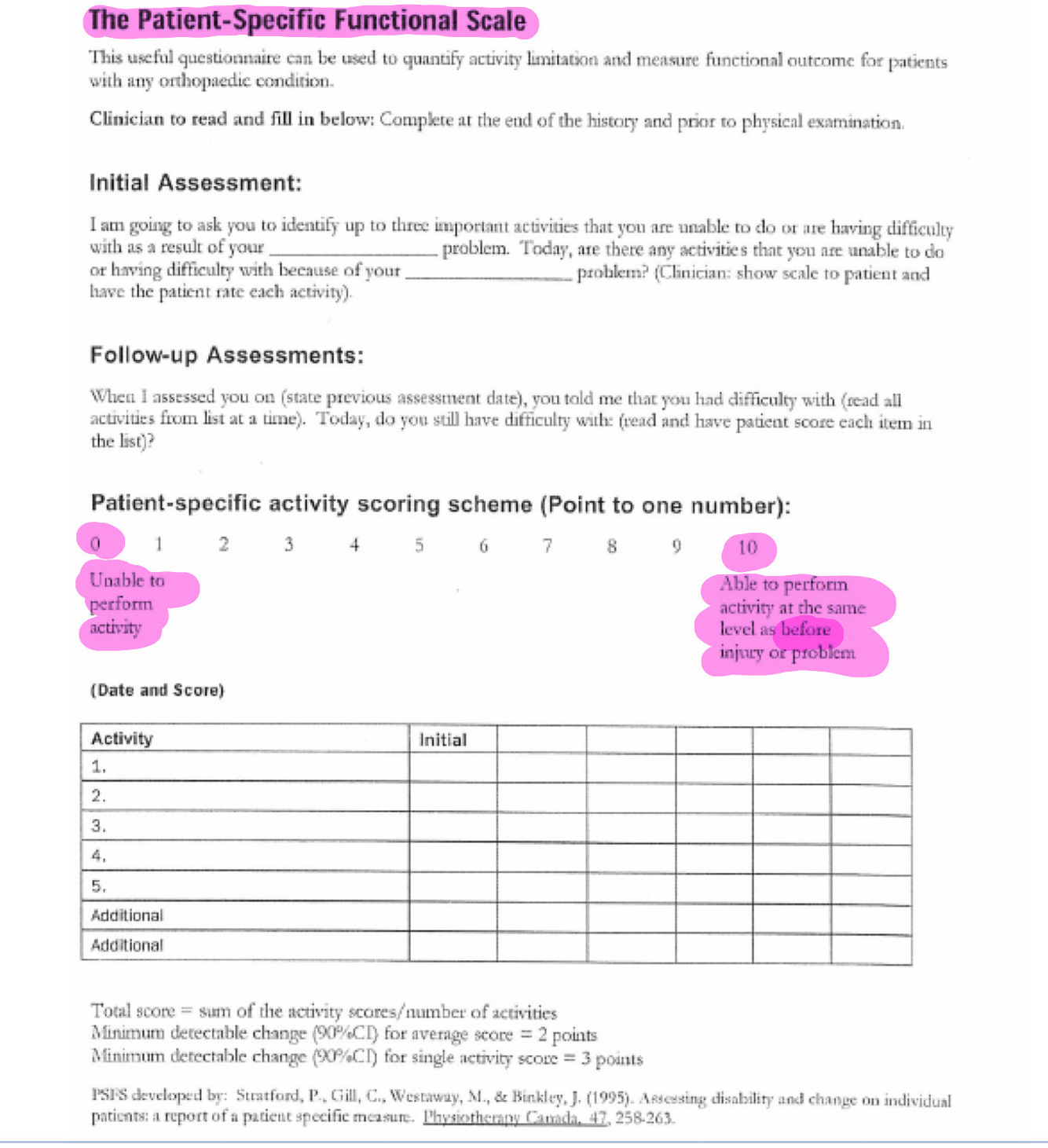 Patient Specific Functional Scale