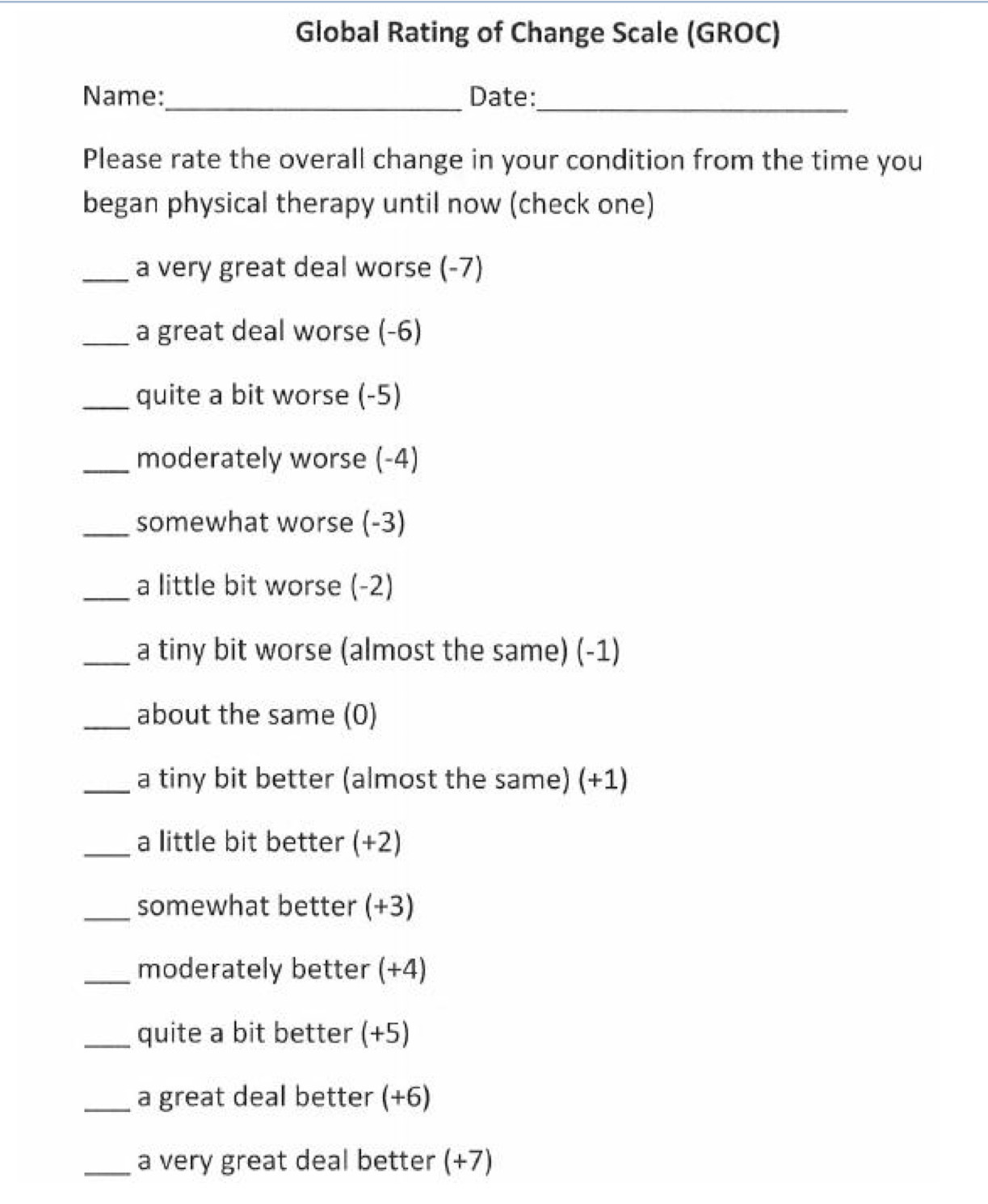 Global Rating of Change Scale