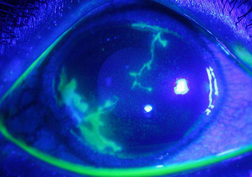 Dendritic ulcer in herpes keratitis