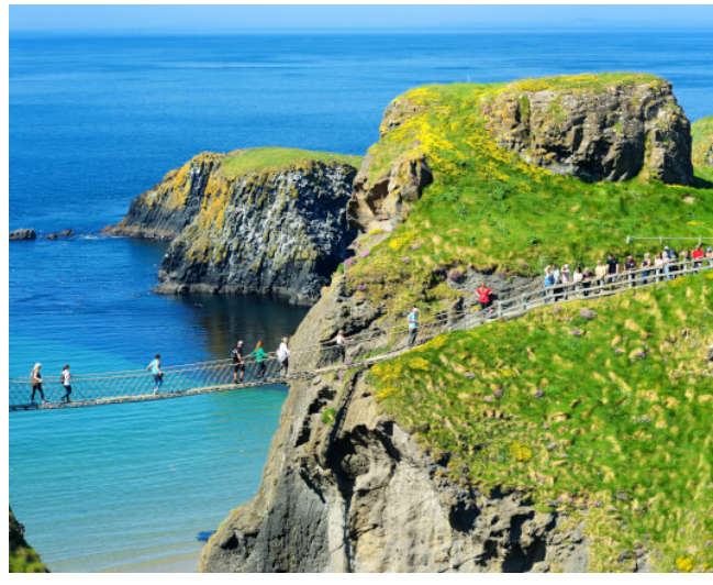 The Carrick-a-Rede rope bridge is a popular tourist attraction and is used to cross to a small island.