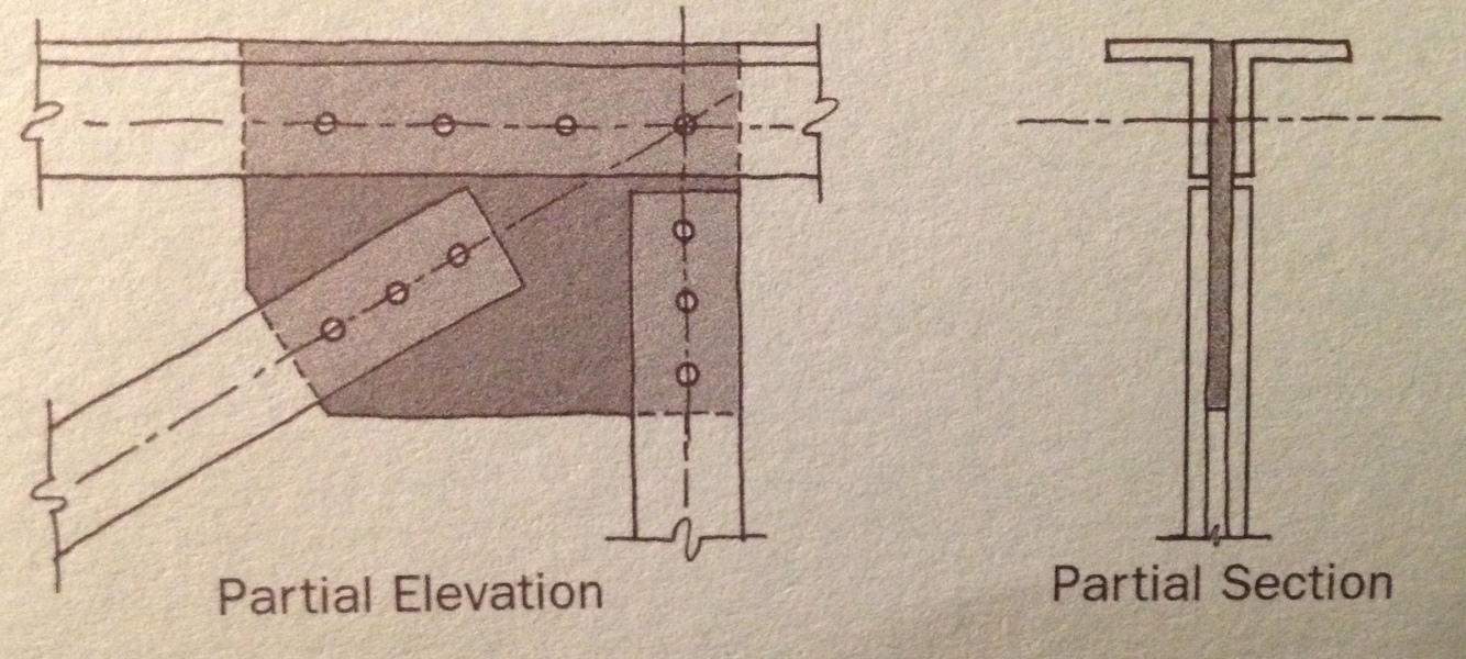 Normally 3/8” or 1/2” thick it is used to allow a bolted or welded connection of truss members. Connectors are located on gage lines that intersect at theoretical panel points. A minimum of two bolts are required at each member. Center-to-Center spacing of holes and the spacing to the edges of plate must follow specified dimensions that are based on the connector diameter and the thickness of the plate.