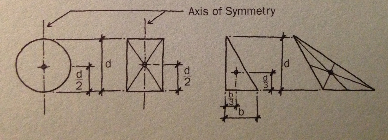 In equations, this is the point at which the cross-section is considered to be concentrated. If a section has an axis of symmetry, this axis will pass through the center of gravity. Most structural calculations are based on cross-section properties that use axes passing through the centroid as the axis of reference.