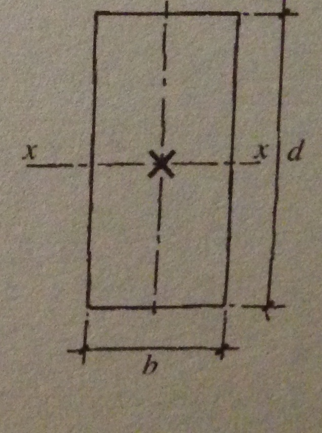 For rectangular sections, Ix = Bd3/12 moment of Inertia is measured in in4.