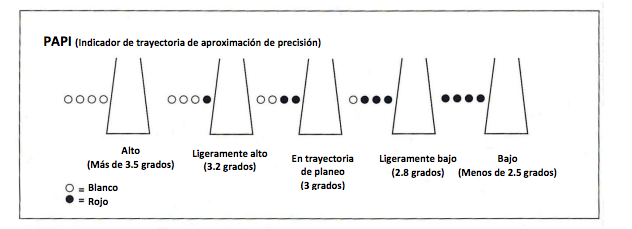 equipada con un VASI estándar de dos barras, las luces se ven tal como se muestra en la