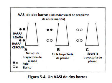 7.- (Refiérase a la Figura 5-4) Las luces VASI, indicadas en la ilustración C, muestran que