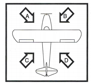 c) Inclinar el cuerpo en dirección opuesta al movimiento de la aeronave.
