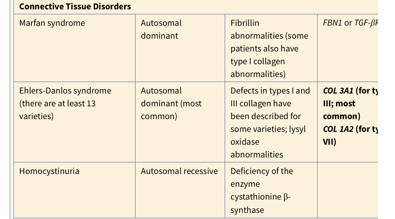 Connective Tissue Genetic Disorders Table