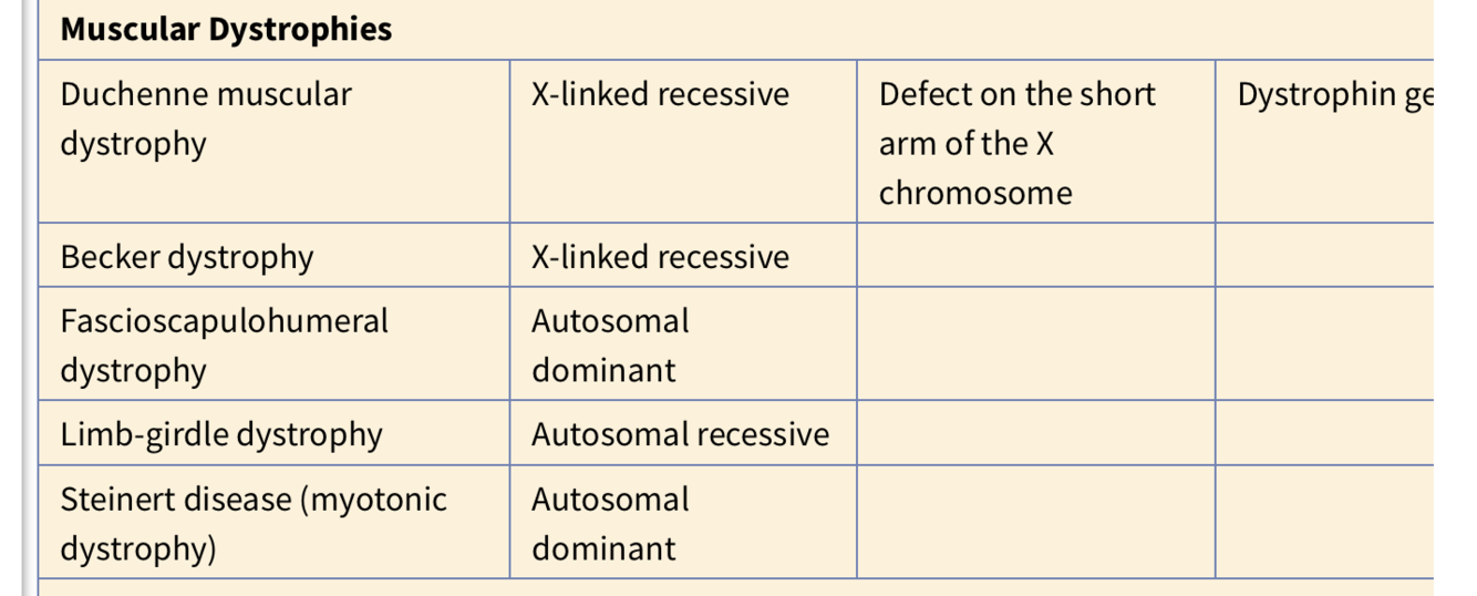 Muscular Dystrophies Table