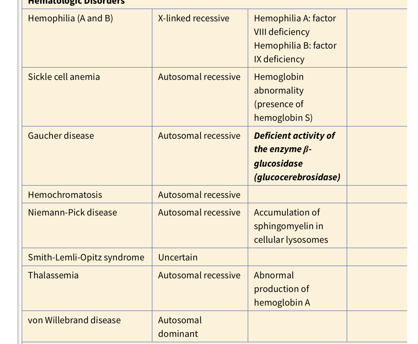 Hematologic Disorders with Genetic components Table
