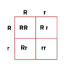 In complete dominance, heterozygotes always display the dominant phenotype. In this example, that allele would be R. The recessive allele is completely “masked” in such cases.