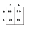 For example, the B and b alleles might code for brown and blue eye color, respectively.