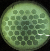 • Dark circles represent areas of Salmonella growth lysed by phage