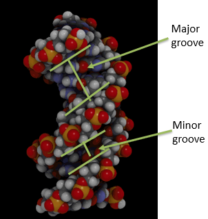 Because the glycosidic bonds that bond the base pairs to the sugar phosphate backbone aren’t directly opposite each other
