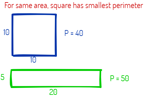 If a rectangle has an area of 100, what is the minimum perimeter?