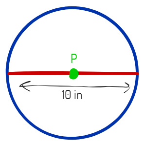 What is the area of the circle below with center P?