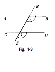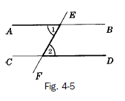 Angle 1 and angle 2 are alternate interior angles of AB and CD cut by EF.