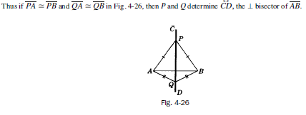 Two points each equidistant from the ends of a line segment determine