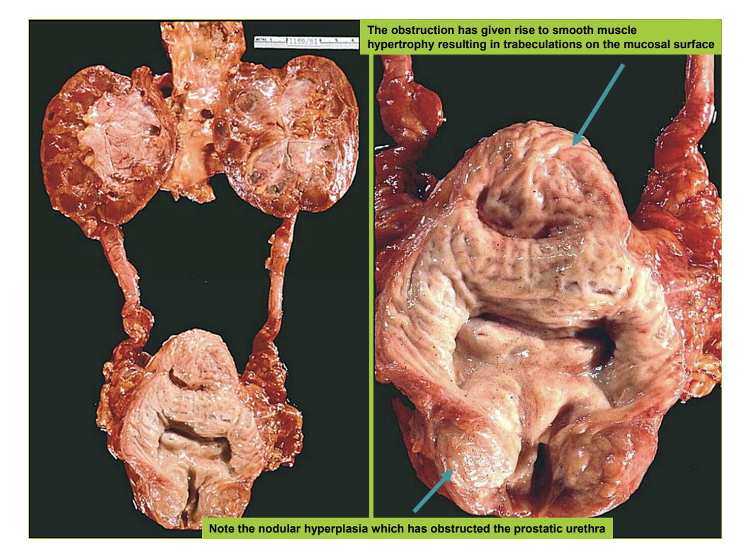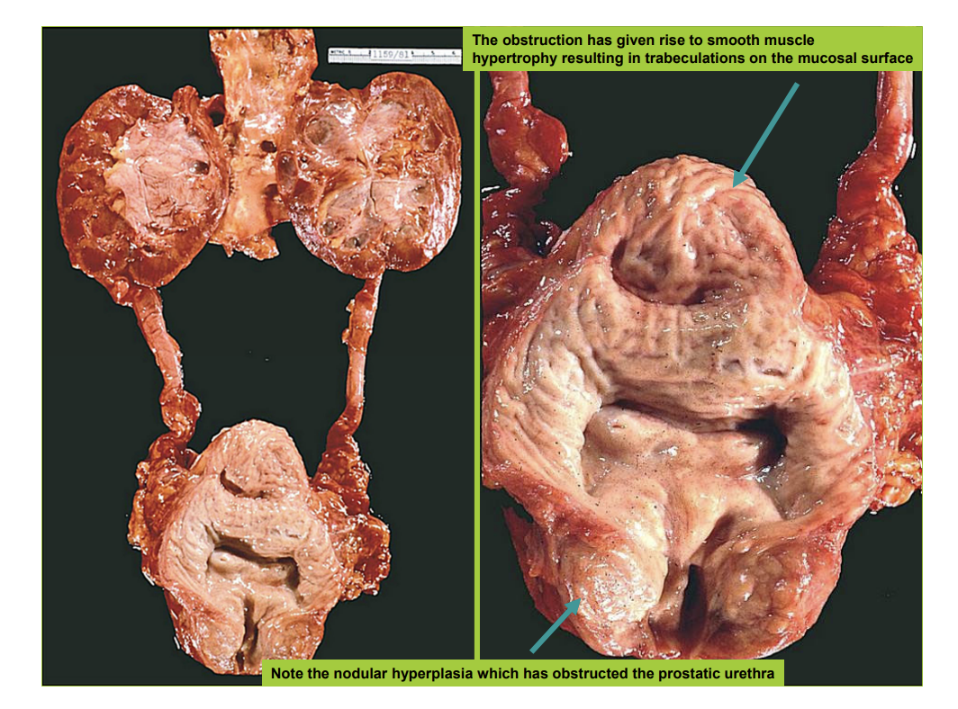 = increase bends (prominent trabeculations on mucosal surface) of muscularic mucosae