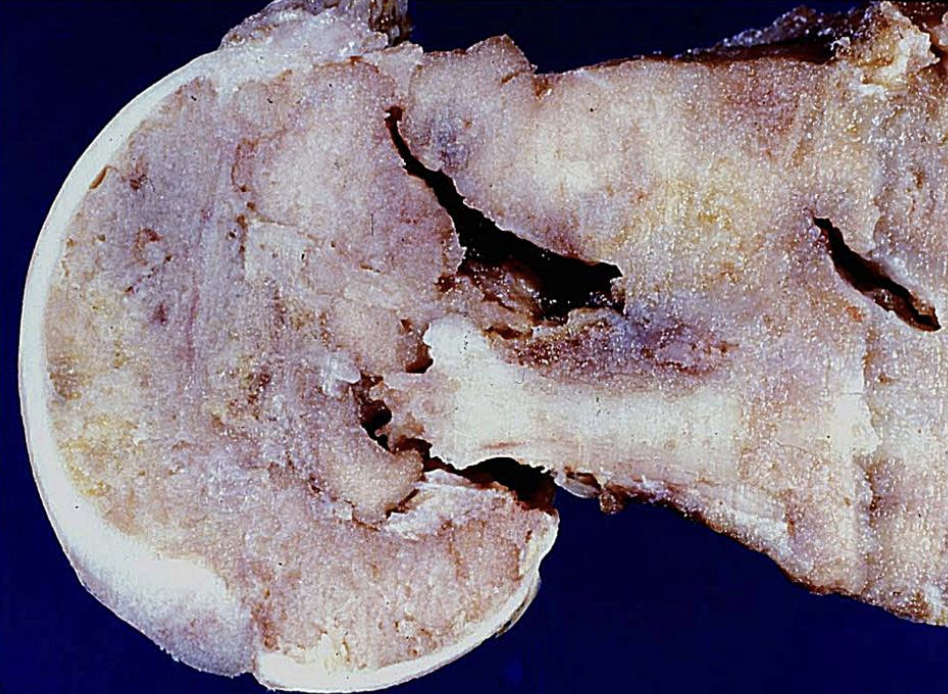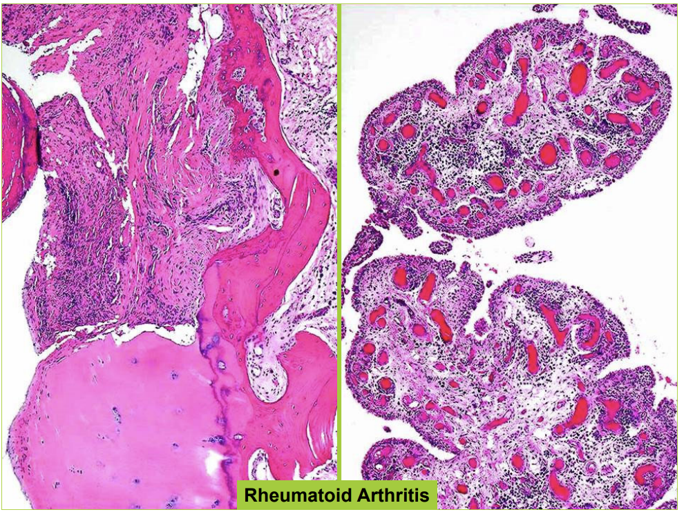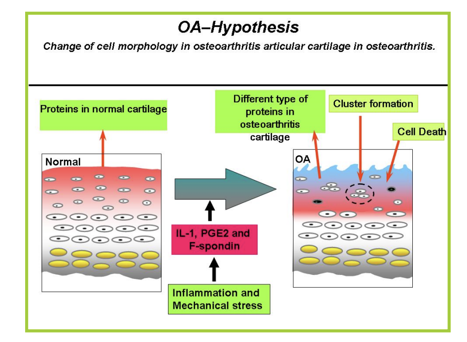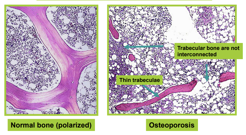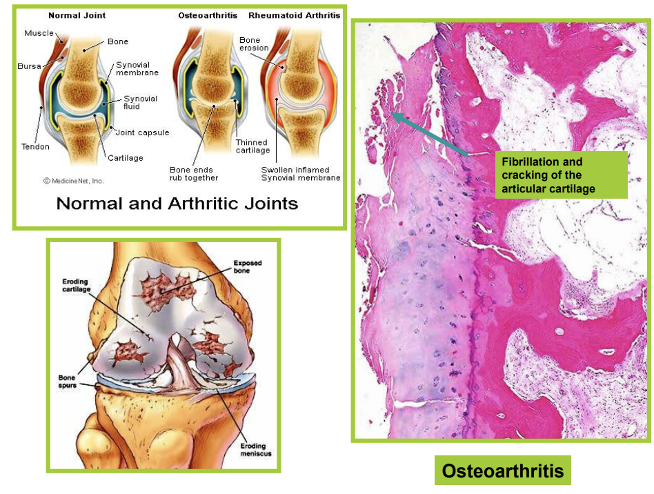 = cartildge does not act as a smooth lubricating surface anymore + thinning of trabeculae bone
