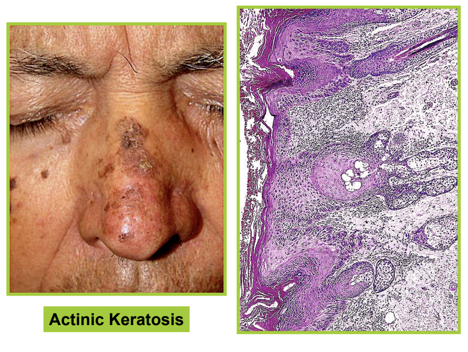 = epidermis can become progresively dysplastic (acttinic keratosis)