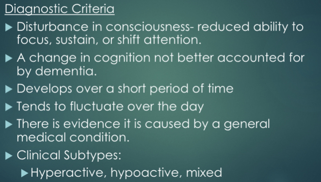 What is the Diagnostic Critera for Delirium?